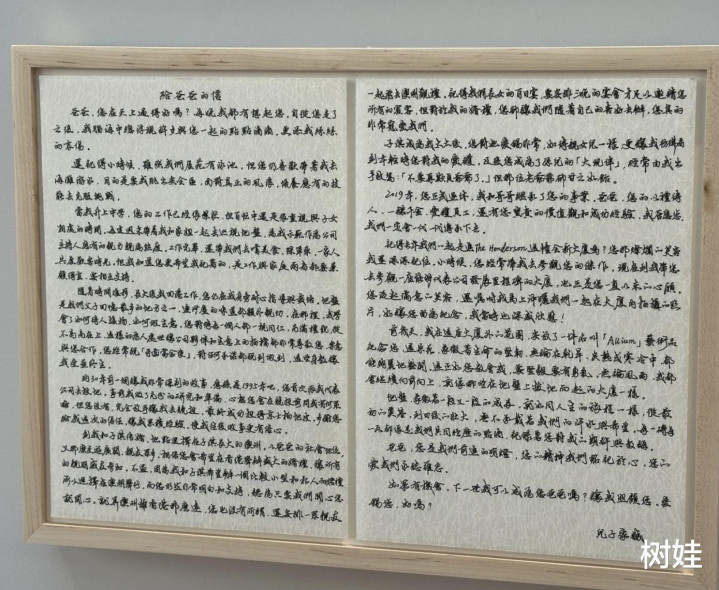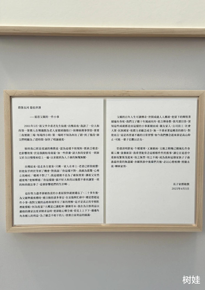 除了与家人各个时期的合照之外,最让人瞩目的还是李兆基的家人在他离世之后给他写的信。展览中展出了李兆基四个家人的信件,包括两个儿子,一个女儿以及儿媳妇的,其中除了长子李家杰不是亲笔书写的之外,另外三人都是亲笔书写,最意外的还是儿媳妇徐子淇竟然也亲笔书写,并且是以中文来书写。徐子淇多年来一直在国外念书,对中国文化甚至中文的认知有限,这是她在心中所自曝的,但是因为她深知李兆基是传统的中国人,所以以中文写一封家书。